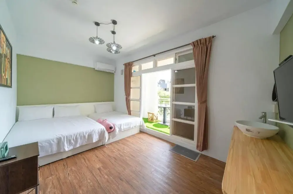 Green Inn offers comfortable accommodations featuring a private bathroom, kitchen, balcony, terrace, and air conditioning. Guests can enjoy free parking and complimentary WiFi throughout their stay. The property is conveniently located near several attractions including Lize Sand-dune Coast Beach at 2.8 kilometers away, Dongshan River Forest Park just 4.5 kilometers distant, and Luodong Train Station approximately 3.6 kilometers from the location. Nearby visitors may explore Pirate's Cove Glass Beach situated 12 kilometers away or visit the Beneficial Microbes Museum and Tourism Factory located 13 kilometers from Green Inn. Reviews highlight positive experiences such as the welcoming service of the host, festive decorations during holidays like Christmas, and recreational options like using large projectors for entertainment activities.